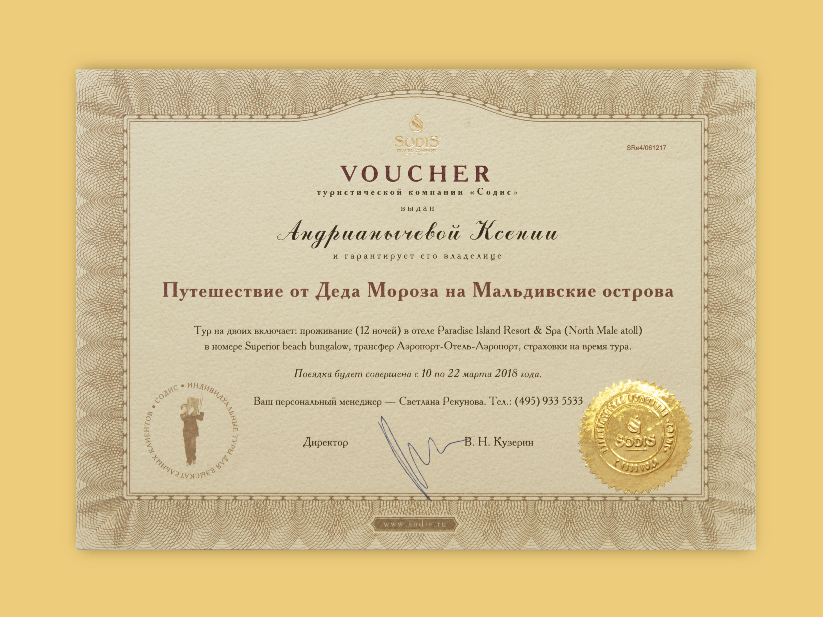 Вариант подарочного бланка может быть изменен по вашему пожеланию